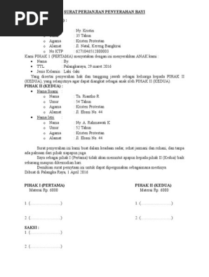 Tinggal diisi data by abu_mf. Pdf surat pernyataan penyerahan anak misbahul elhasany. Surat adopsi anak tersebut mengandung informasi dan perjanjian bahwa adopsi dilakukan untuk membahagiakan anak. Contoh surat perjanjian adopsi serah terima anak kandung. Memahami secara rinci seputar surat perjanjian hutang piutang atau biasa dikenal juga surat perjanjian pinjam uang.